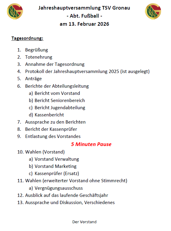 Jahreshauptversammlung Fußball 13.02.2026